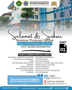 Kegiatan Seminar Proposal Skripsi ini tidak hanya bertujuan untuk menilai kesiapan mahasiswa dalam menyusun skripsi, tetapi juga melatih kemampuan berpikir kritis, komunikasi akademik, serta etika ilmiah. Nilai-nilai tersebut sejalan dengan visi STIT Maskumambang dalam mencetak lulusan yang unggul secara intelektual, berakhlak karimah, dan berlandaskan akidah yang shahih.